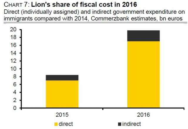 Алесь Posted October 20, 2015 Author Share Posted October 20, 2015 Commerzbank: Германия потратит €27 млрд на беженцев 19.10.2015 - 22:43 По оценкам аналитиков одного из ведущих немецких банков, до конца 2016 г. в Германию попадет более 2 млн мигрантов. Прямые и косвенные затраты на их размещение превысят 27 млрд евро. Аналитики Commerzbank опубликовали доклад с прогнозами по развитию миграционного кризиса в Германии. По оценкам экспертов, в 2015 г. число зарегистрированных мигрантов на территории Германии составит 600 тыс. человек. В 2016 г. их количество вырастет уже до 1,45 млн. При этом в Commerzbank отмечают: данные оценки будут верными лишь с учетом прогноза о том, что в следующем году Германия сможет выдворить около 500 тыс. мигрантов, прибывших в страну в этом году. По мнению экспертов под руководством главного экономиста Commerzbank Йорга Кремера, общие фискальные затраты (прямые и косвенные) на размещение, выплату пособий, интеграцию мигрантов и т. д. в 2015 г. составят более 8 млрд евро в 2015 г. и более 19 млрд евро в 2016 г.: По оценкам Commerzbank, расходы правительства Германии на одного мигранта в среднем составят €978,70 в месяц и €11,7 тыс. — в год. Из этой суммы мигранты будут получать €216 в месяц на еду и другие расходы, еще €143 — на другие «личные ежедневные расходы». Затраты на обеспечение жильем на одного мигранта в среднем составят около €370 в месяц, на медицинское обслуживание — €250 в месяц. Ряд европейских политиков уже заявляли о том, что ЕС ограничит прием мигрантов в статусе «беженцев» по ряду направлений — из Балканских стран, а также Украины. Источник Quote Link to comment Share on other sites More sharing options...